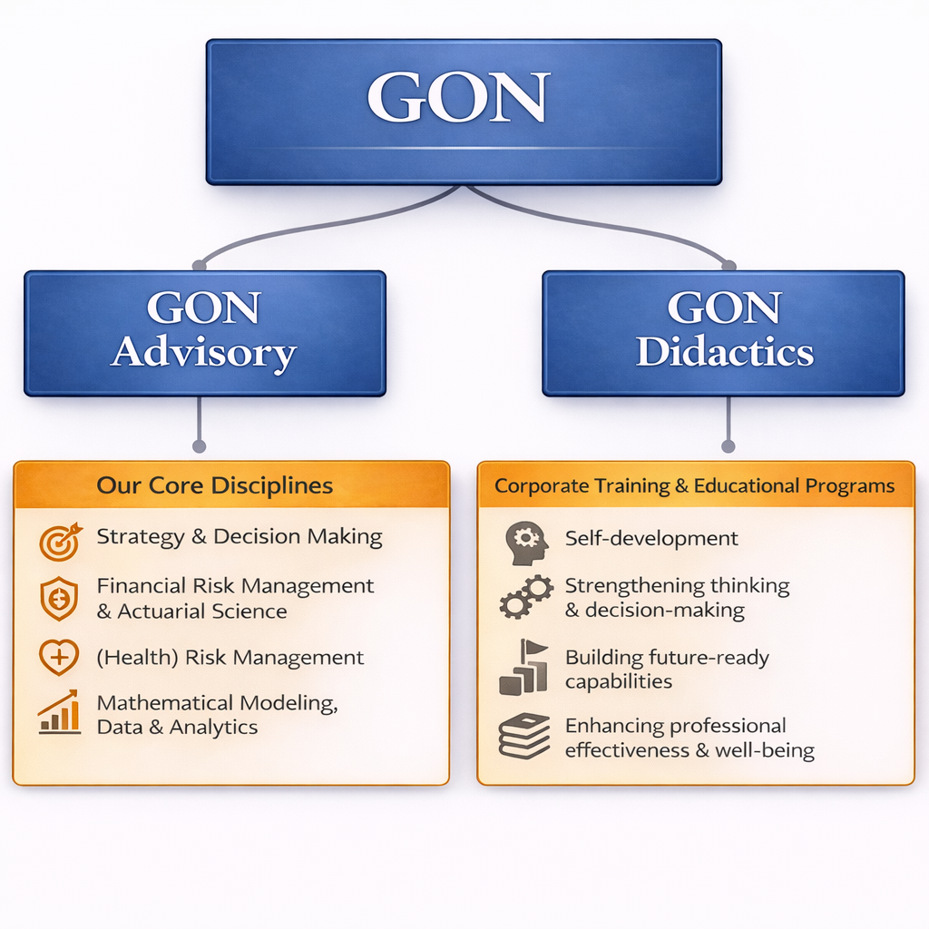 At GON, we possess broad expertise across a variety of fields that we have developed over the past 20 years. We have organized this expertise and our services into two main branches: Advisory and Didactics. The image below provides a clear schematic overview of this structure and what activities fall under each branch.