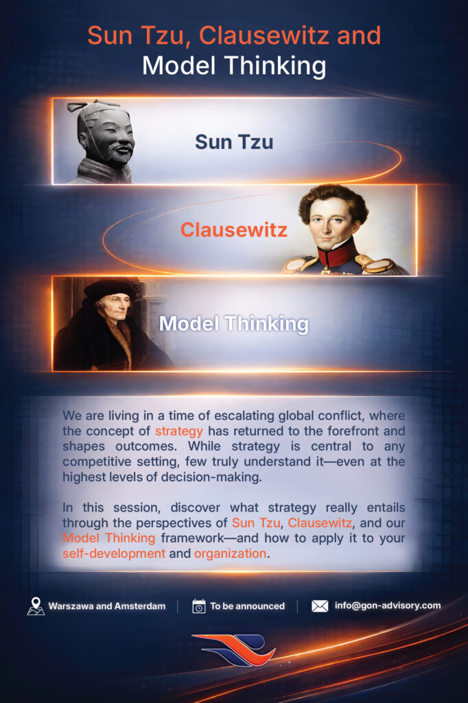 Going forward, we plan to organize more real-life events and talks, which will provide a fun setting to explore highly relevant and impactful topics and concepts. The upcoming event is titled “Sun Tzu, Clausewitz and Model Thinking”, a particularly impactful and relevant topic that will provide many profound insights, as will become clear during the talk. The key focus of the talk is the concept of strategy, which is a vital concept in any competitive setting but also one that is highly complex and often poorly understood, even at the highest levels of decision-making. In this session, however, we will clarify it through the perspectives of Sun Tzu, Carl von Clausewitz, and our methodology of Model Thinking.